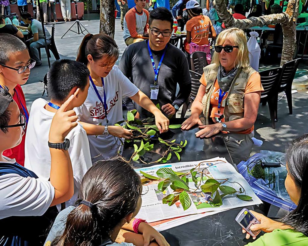 At the time, Lowman was also the Director of Science and Sustainability at the California Academy of Sciences (CAS), overseeing a staff of over 100 field researchers. With Lowman’s expertise, The Habitat created a long-term vision for research in the unique forests surrounding Penang Island. Lowman partnered with the University of Science Malaysia (USM), becoming an Adjunct professor to foster collaboration between local faculty and The Habitat, as well as to mentor students from the School of Biological Sciences. She obtained a grant from The Habitat Foundation (THF) to fund international scientists to partner with local biologists to conduct a ten-day bioblitz, which is an intensive survey of everything living in a specific site. Lowman also obtained an American-based foundation grant to fund K-12 students to participate in the bioblitz through a program called the Jason Learning Project.