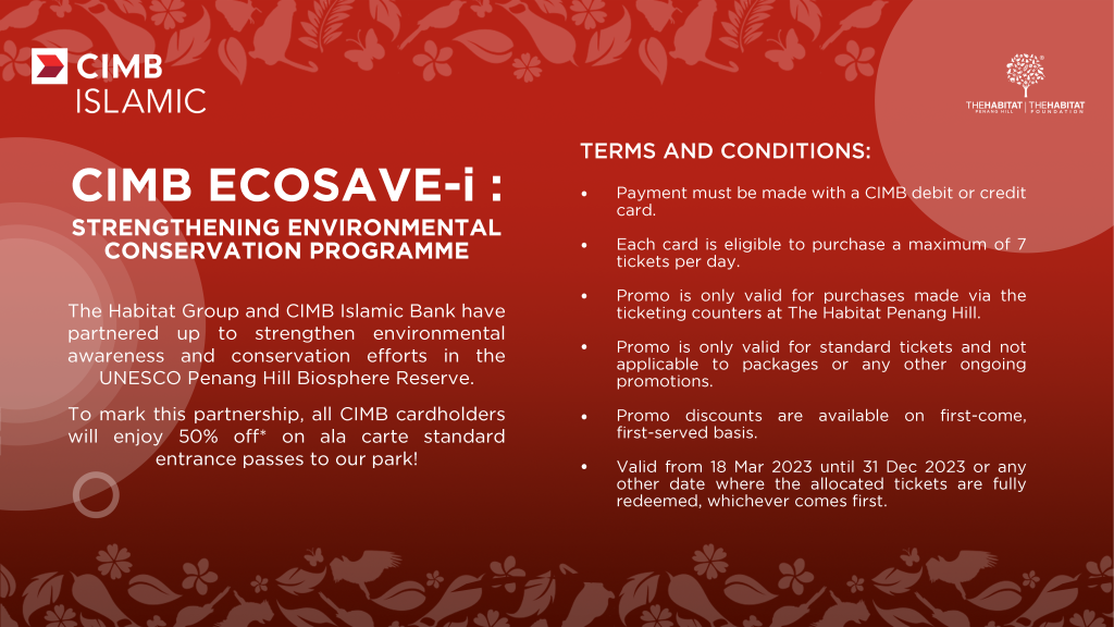 Recognizing the value of the island’s biodiversity-rich landscape, The biosphere reserve designation was a pledge to ensure that natural areas are safely stewarded. Today we are proud to forge a partnership with CIMB Islamic to promote and strengthen environmental conservation and awareness efforts in the UNESCO Penang Hill Biosphere Reserve.