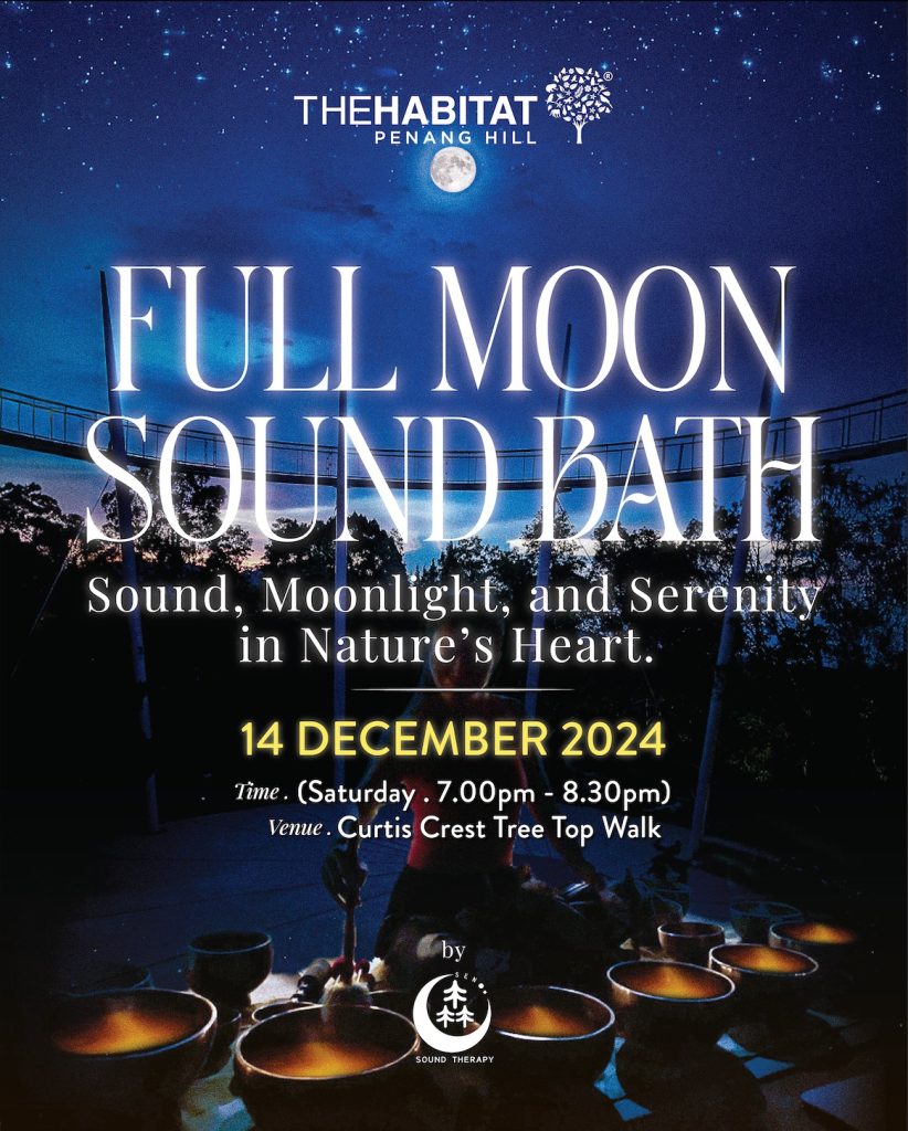 As 2024 comes to an end, join us for a Full Moon Sound Bath experience to reflect, release, and realign. In the heart of the UNESCO Penang Hill Biosphere Reserve, immerse yourself in an evening where nature’s tranquility meets the healing power of sound.
