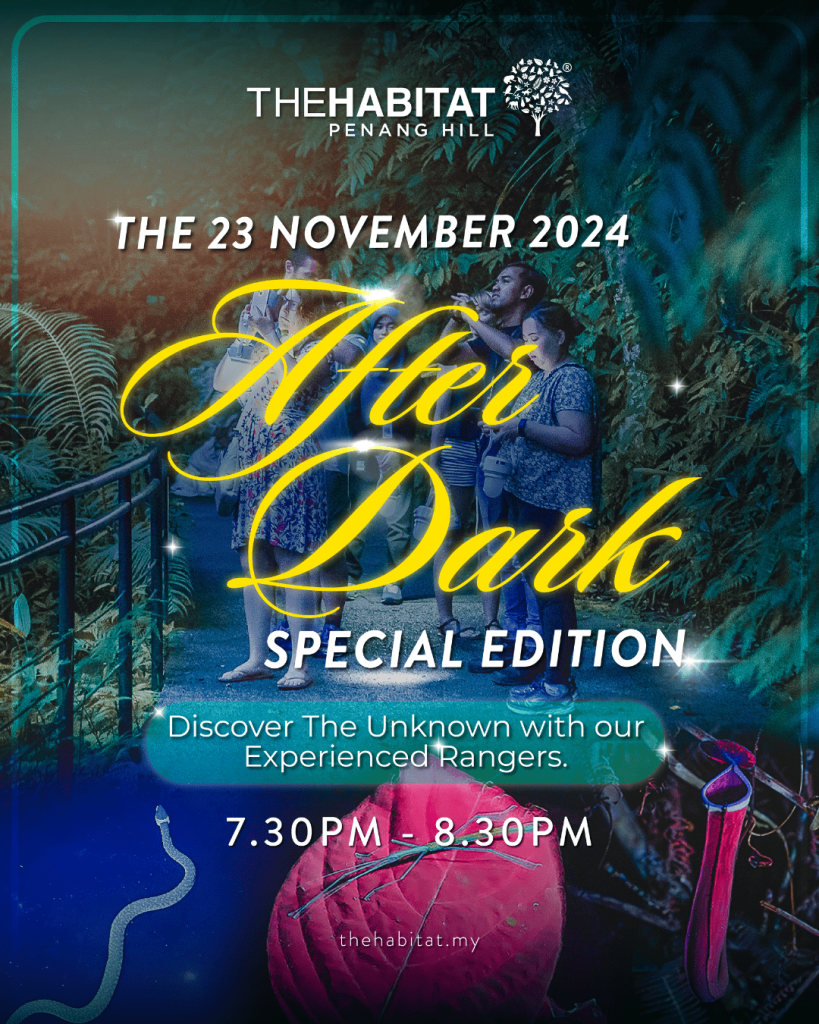 The Habitat Penang Hill invites you to embark on a truly unique adventure—The 23rd November After Dark Special Edition—discover the unknown with our experienced rangers on a guided night walk through the ancient rainforest of the UNESCO Penang Hill Biosphere Reserve.
